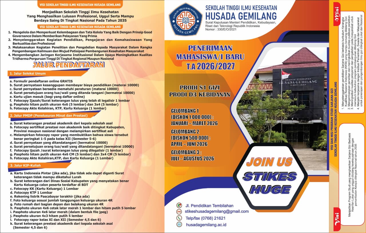 Prosesi pengukuhan dan ucap janji merupakan proses awal bagi mahasiswa sebelum melaksanakan praktek klinik kebidanan di lahan praktek yang telah ditaja oleh stikes husada gemilang sesuai mou. Pada acara ini juga Yayasan Husada Gemilang memberkan beasiswa berpretasi kepada mahasiswi yang memiliki IPK tertinggi yaitu atas nama :